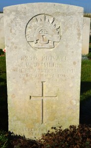 Patrick Joseph Mills was born at Gordon, about 25 Km from Ballarat. He came from a very large family of 18 children and one foster child. Similar to the Appleyard family above, at least 5 Mills brothers saw service in WW1. Two served in the New Zealand army – John Francis Mills KIA and George Thomas Mills – and at least 3 served in the AIF: Patrick Joseph Mills, William Mills and Gordon Francis Mills. Of the 3 in the AIF, William Mills returned to Australia in 1919 with an English wife – Margaret New – but the other 2 brothers were killed: Gordon Francis Mills 4/10/17 and Patrick Joseph Mills 29/8/16.