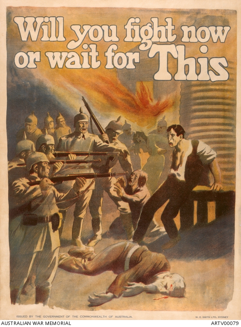 The perceived threat posed by the influenza pandemic on Australia was inextricably tied up with views of Australia’s ‘natural’ protection which were themselves tied to its geographical isolation. Admittedly, during the War, many had argued vehemently that Australia was not protected by its isolation. There was the famous 1918 enlistment poster by Lindsay (below) of defenceless Australians being shot by German soldiers against the tank stand in the back yard. The threat of German invasion was proclaimed as real and Australia could not simply rely on its unique geography. Similarly, the fear of an unpopulated and defenceless North was widely seen as an ongoing threat to both national integrity and the White Australia policy. However, there was also the common-sense conviction that Australia was greatly protected by its isolation. Certainly, in the case of the flu pandemic, both the medical authorities and the general population were initially reassured by the relative isolation. Also, Australia, again because of its relative isolation, had time to prepare for the flu should it breach the natural defence of geography.